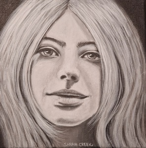 2013Portret van Tjerk, een Fries paard. Met acryl geschilderd. Is afgelakt en heeft een vintage zilveren baklijst.