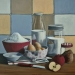 60 x 50 x 4 cm, © 2023, verkochtTweedimensionaal | Schilderkunst | Acryl | Op doek Delfs blauwe vaas met pioenrozen
