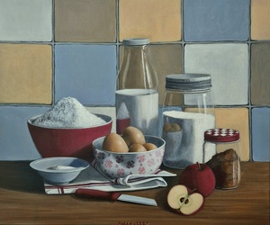 2023Stilleven met Pasta ingrediënten geïnspireerd door Vermeer. Derde prijs gewonnen bij de Zwolse Vermeer georganiseerd door Busch en van der Worp.